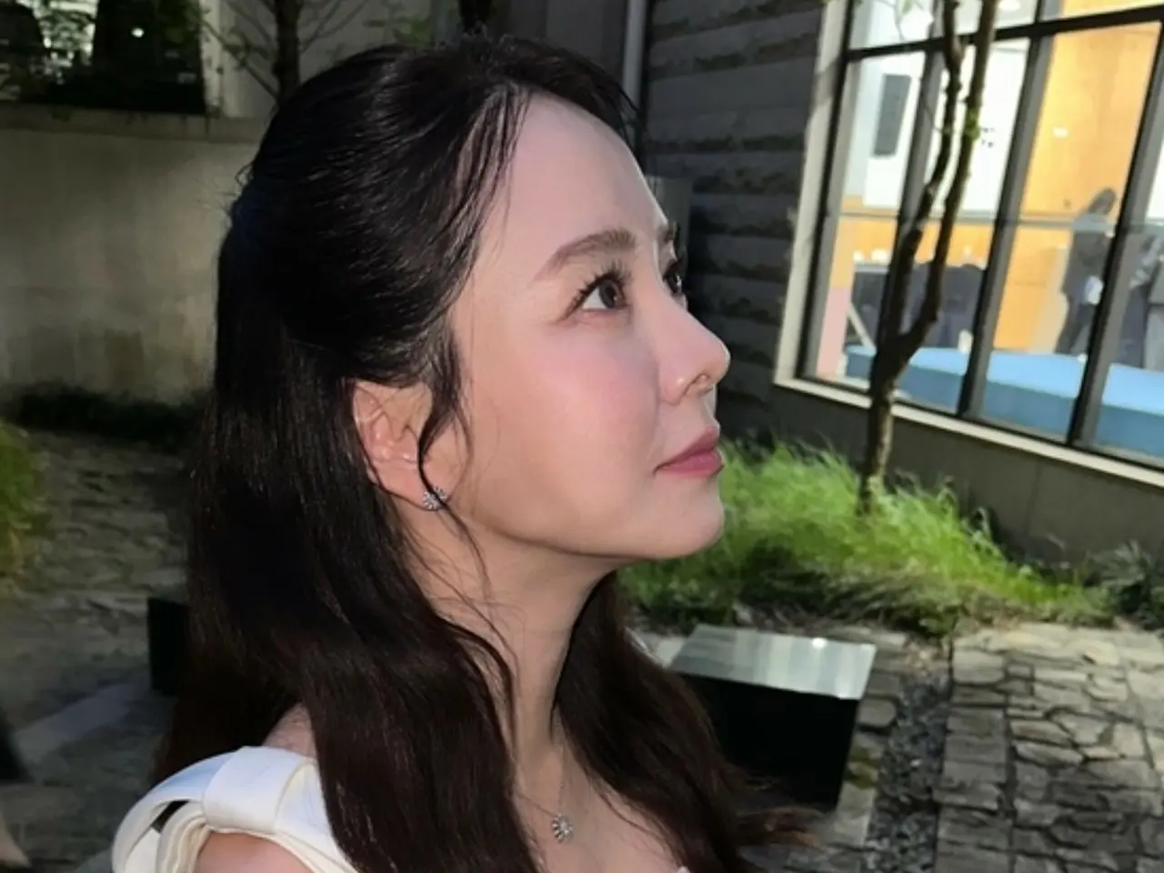 송지현은 순백의 드레스를 입고 여신 미모를 자랑하고 있습니다.