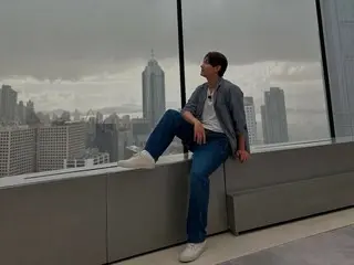 난간에 앉아 포즈를 취하는 모습 등이 찍혀 있습니다. 또한 홍콩의 특이한 건축물 앞에 묻는 '이유있는 건축'의 공연자로 건축가 유현준 교수와 탈렌