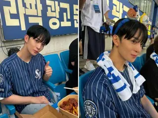 공개된 사진 속 배지영은 삼성 유니폼을 입고 응원 수건을 목에 감았다.