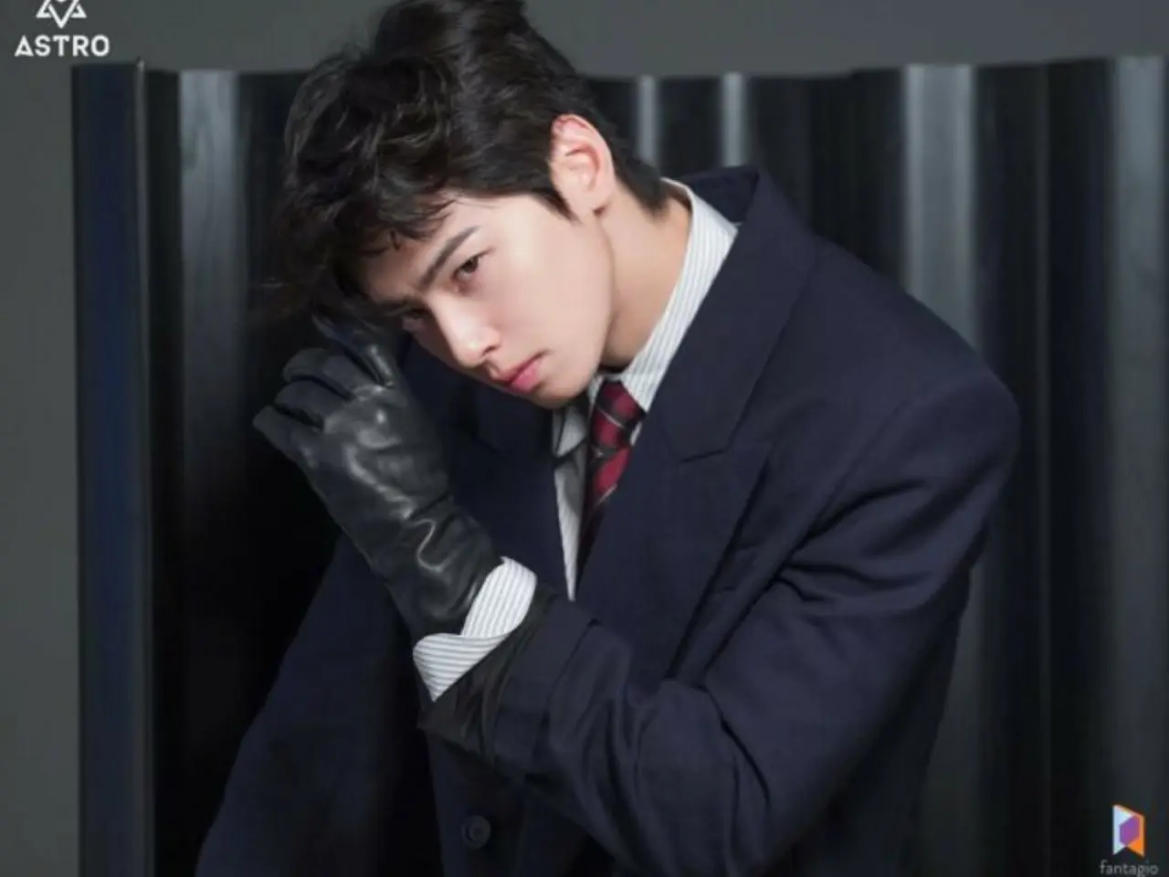 수많은 사진을 게재했습니다. 사진에는 네이비의 슈트와 스트라이프 무늬의 넥타이라는 전통적인 스타일에 가죽 장갑을 매치시킨 Cha Eun Woo의 모습이 담겨