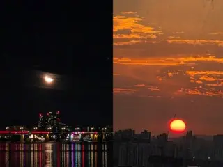 수평선 아래로 천천히 가라앉는 태양과 붉은 구름이 조화를 이룬 풍경은 마치 전날 달빛의 사진과 연작시처럼 연결되어 팬들에게 새로운 감동을 선사했습니다.